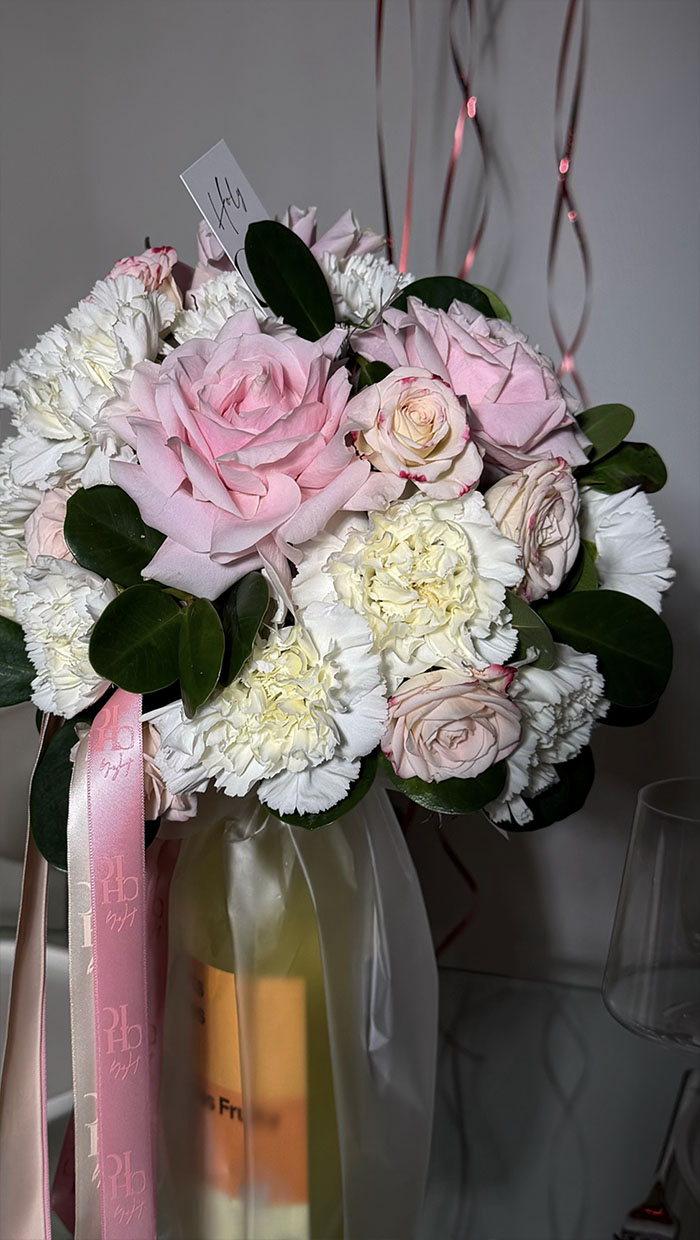 When selecting a bouquet, we consider its size, color palette, and approximate composition. Please note that the flower selection may vary slightly from what is shown in the photo, depending on availability and seasonality. However, our team will do their best to ensure the bouquet's mood and overall feel remain exactly as you selected.