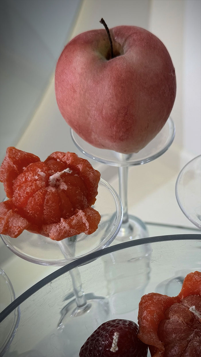 A handcrafted candle set featuring berries and open mandarin shapes with a variety of scents - a vibrant, cozy gift that fills the space with warm, fruity aromas