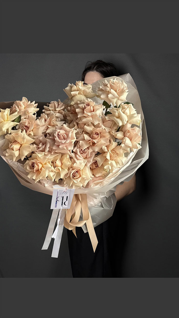 When selecting a bouquet, we consider its size, color palette, and approximate composition. Please note that the flower selection may vary slightly from what is shown in the photo, depending on availability and seasonality. However, our team will do their best to ensure the bouquet's mood and overall feel remain exactly as you selected.