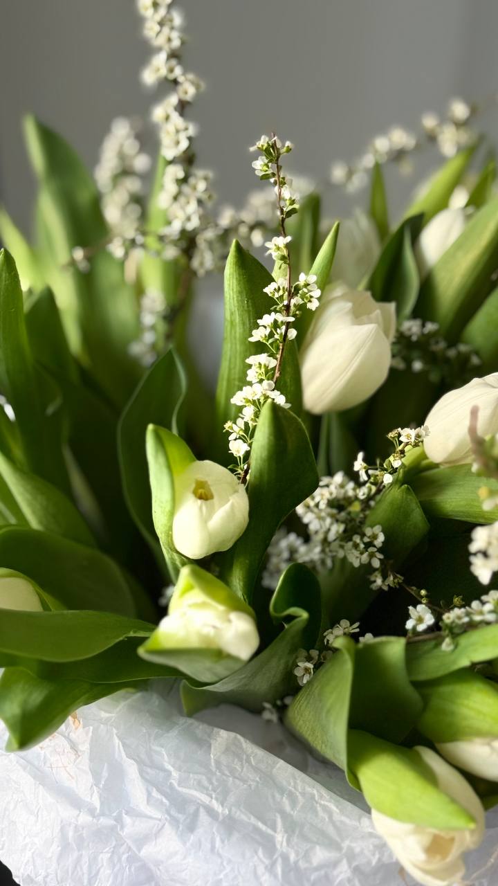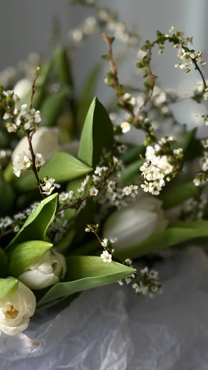 When selecting a bouquet, we consider its size, color palette, and approximate composition. Please note that the flower selection may vary slightly from what is shown in the photo, depending on availability and seasonality. However, our team will do their best to ensure the bouquet's mood and overall feel remain exactly as you selected.